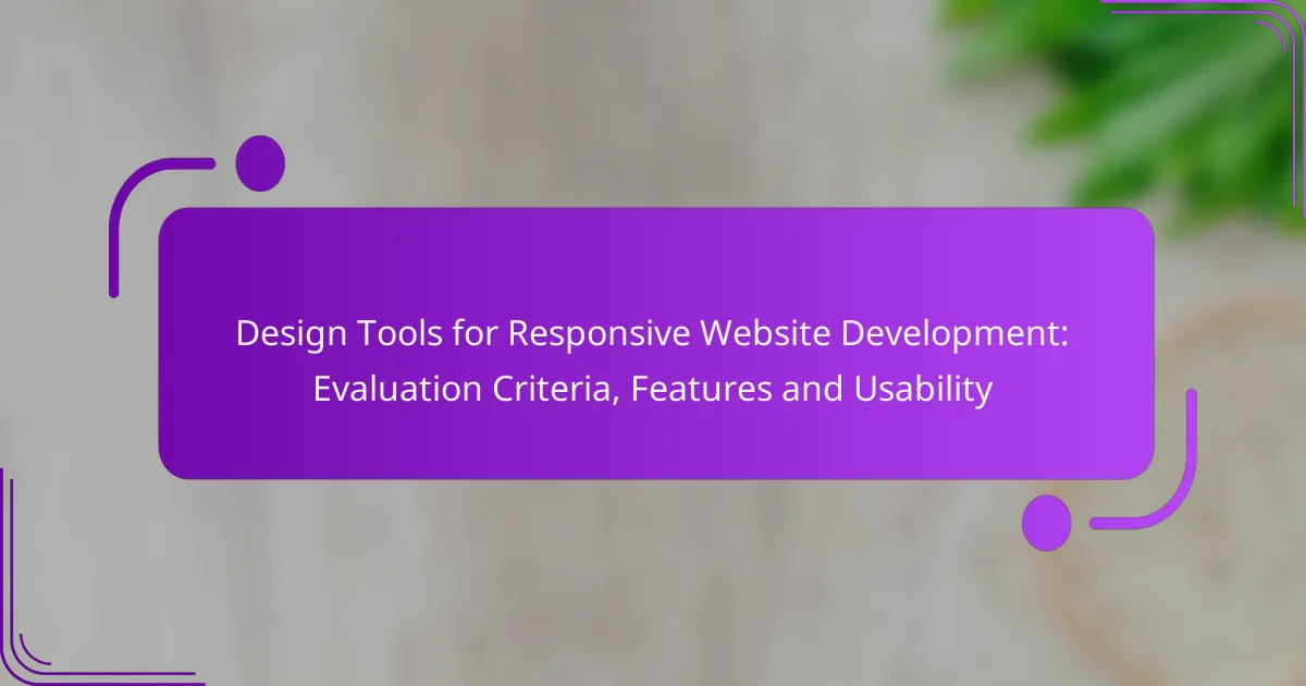 In the realm of responsive website development, choosing the right design tools is essential for creating adaptable and user-friendly interfaces. Key evaluation criteria include features that enhance collaboration, usability, and integration capabilities, which collectively streamline the design process. Popular tools like Figma, Adobe XD, and Webflow offer unique functionalities that cater to various design needs, making them valuable assets for any designer aiming to optimize their workflow.